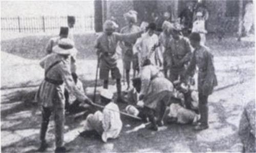 (सनातनी हिंदु धर्माला डांबर फासत आहेत . गांधीजी ते कष्टाने पुसू पाहत आहेत आणि आंबेडकर त्याचा पाया असलेल्या वर्ण व्यवस्थेवर हातोड्याने घाव घालत आहेत. ब्रिटीश लांबून मजा बघत आहेत- तत्कालीन व्यंगचित्र )