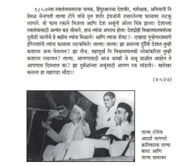 आपली मातृभूमी प्रियतमा तिच्या स्वातंत्र्यासाठी जिहाद करण्यास तयार झालेली आहे... ... गोर्या फिरंग्यांचे ताब्यातून हिंदुस्थानची मुक्तता करण्यासाठी इराणी (मुस्लिम) सैन्य लवकरच येत आहे. तेंव्हा या काफिर इंग्रजांच्या ताब्यातून मुक्त होण्यासाठी समरांगणात उडी घ्यावी" . अशा अर्थाची वाक्ये सावरकरांच्या १८५७ वरील पुस्तकात सर्रास आढळतात. (संपुर्ण संदर्भ येथे क्लिक करा )