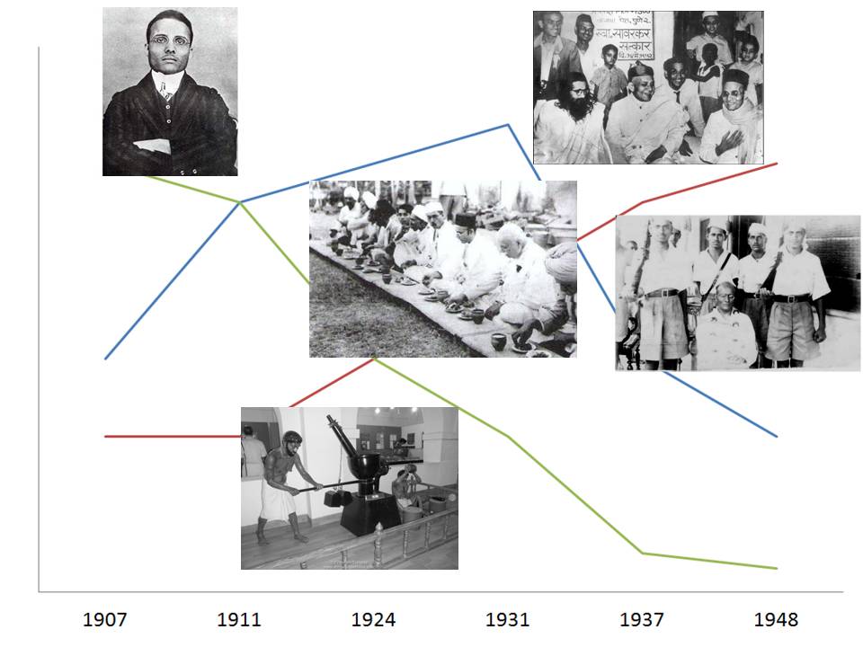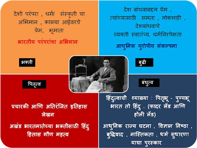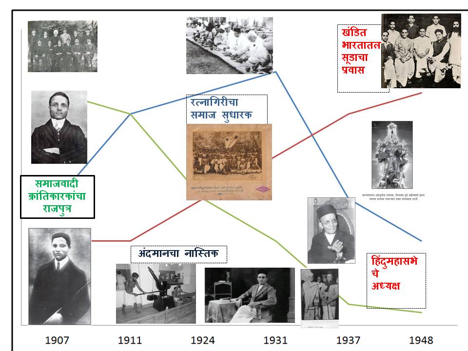 हे सर्व विचार एकाच व्यक्तीचे आहेत . सावरकरांनी कोणत्या काळात ते मांडले हे पाहिले तर त्याचा एक चिकित्सक आलेख काढता येईल . प्रस्तुत लेखाचा तोच हेतू आहे . समकालीन राजकारणाचा हा वेगळ्या अंगाने घेतलेलेला शोध आहे . सावरकरांच्या जाहीर राजकीय भूमिका कालानुक्रमे पाहू . १९०७ , १९११,१९२४, १९३७ आणि १९४८ या पाच टप्प्यात सावरकरांचे बदलते विचार पहायचे आहेत . हे विचार निश्चितपणे परस्पर विरोधी आहेत . त्यातले उपयुक्त कोणते ? याचा फैसला वाचकांनीच करायचा आहे.