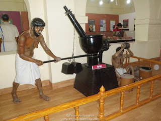 | अंदमानातल्या म्युझियम मधील कोलू ची प्रतिकृती : कोलुने खोबरे दळून तेल काढायची शिक्षा सावरकरांना अनेकदा झाली होती . |