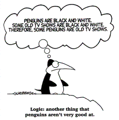 याचं अॅरिस्टॉटलने दिलेलं उदाहरण सांगतो. हा कुत्रा बाप आहे, हा कुत्रा तुझा आहे. म्हणून हा कुत्रा तुझा बाप आहे. हे विधान उघडच तर्कसंगत नाही.