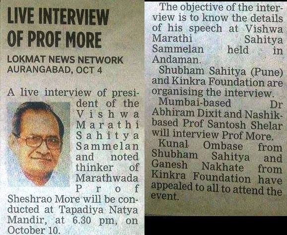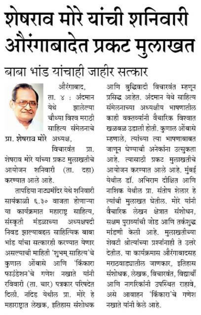 प्रा शेषराव मोरे मुलाखत : १० ओक्टोबर २०१५ - औरंगाबाद